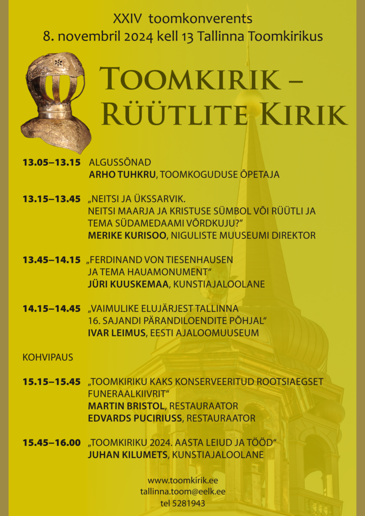 15.15 – 15.45  „Toomkiriku kaks konserveeritud rootsiaegset funeraalkiivrit“  – Martin Bristol, restauraator; Edvards Puciriuss, restauraator
