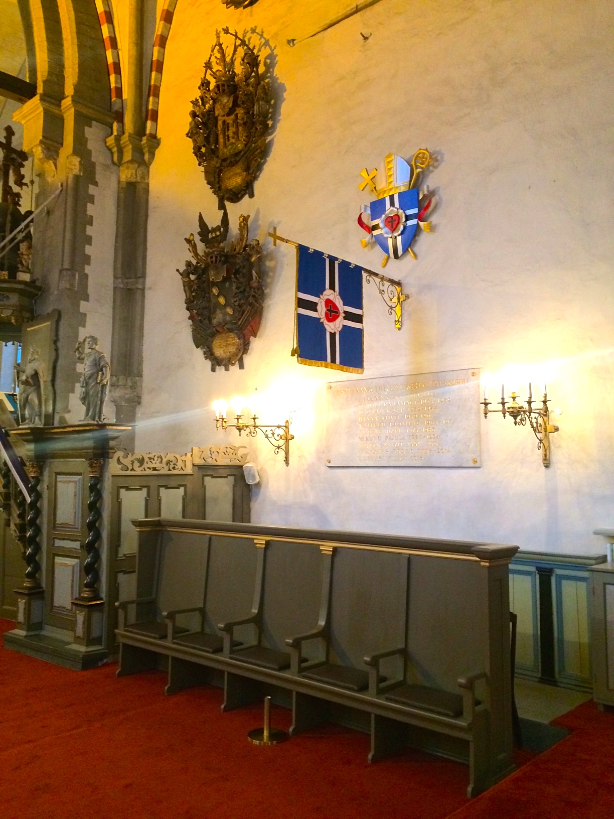 Piiskoppide pink ja nimetahvel ning EELK vapp ja lipp Tallinna toomkirikus